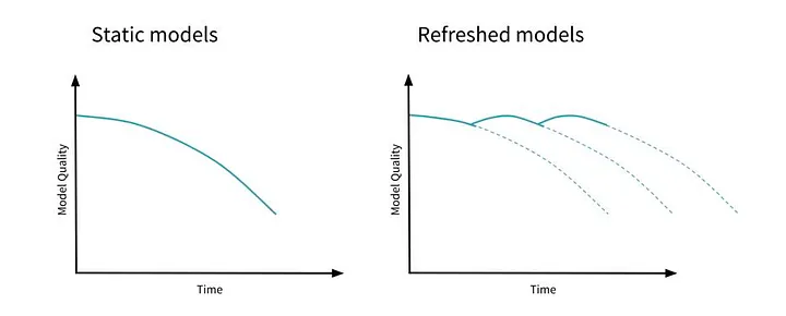 Imagine that you have an online bookstore, and you haven’t updated your machine learning model which generates users book recommendations for years. As you might imagine, you would not have an accurate picture of your customers — whose demographic variables and preferences might have changed over time. Not only that — you would not be recommending new books, since your recommendation system was not trained with them. In other words, it simply didn’t know about their existence.